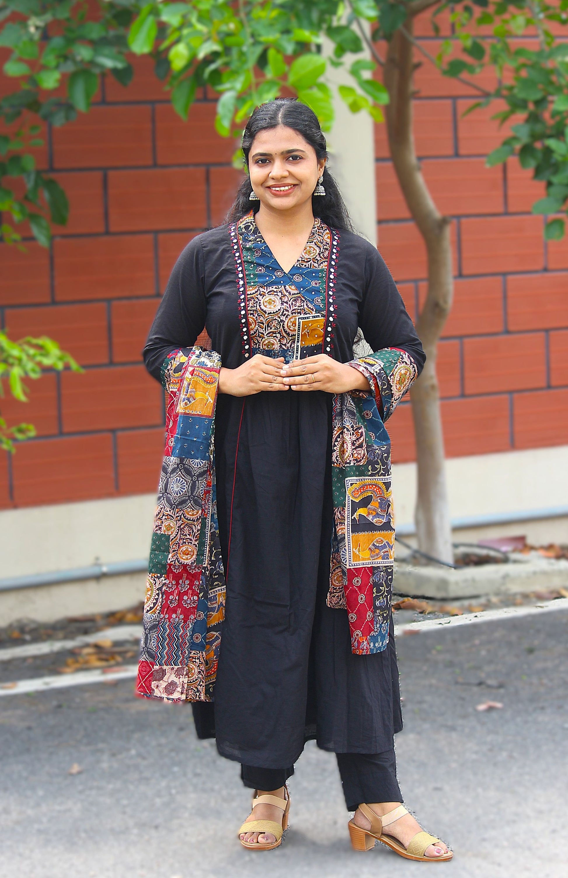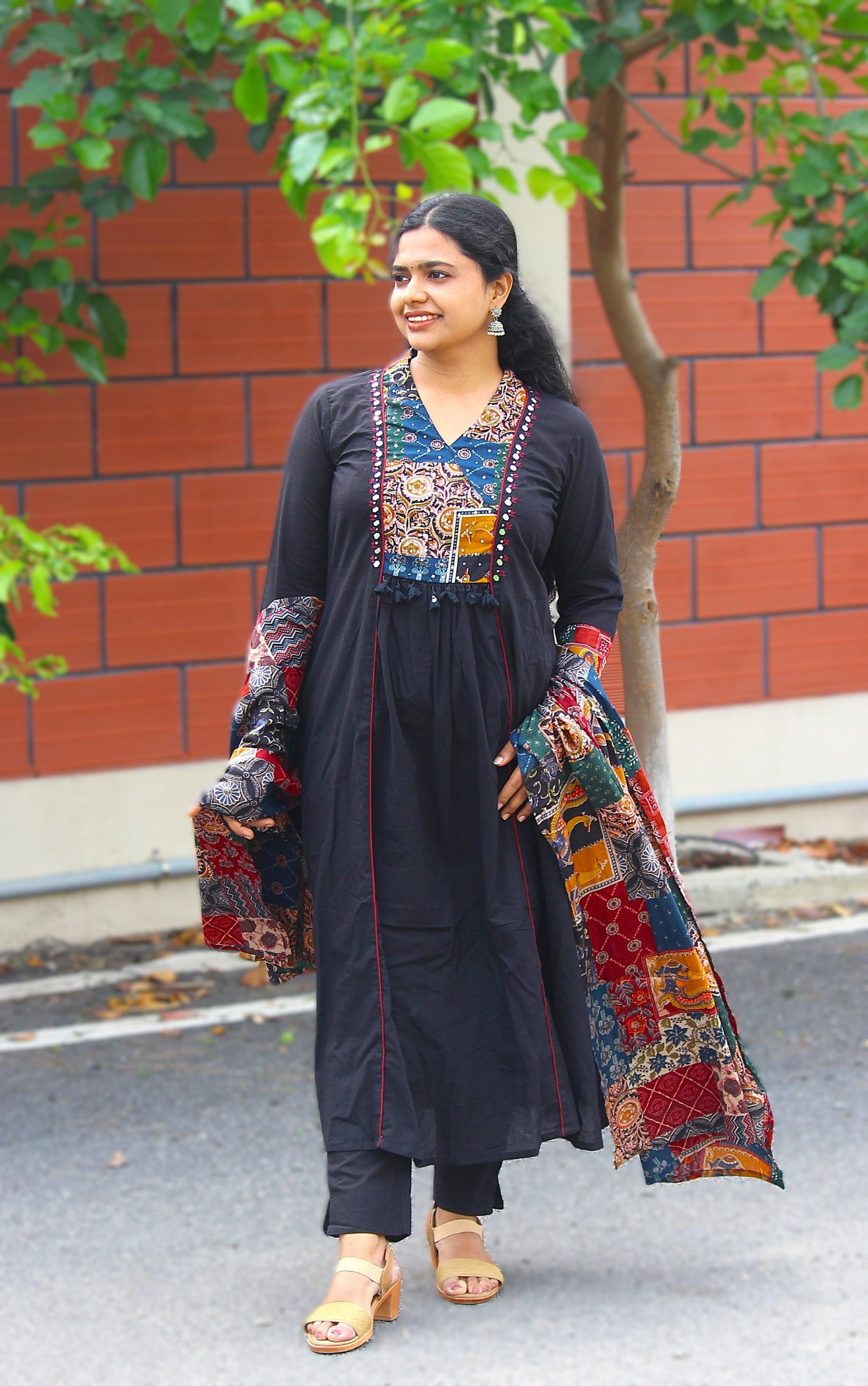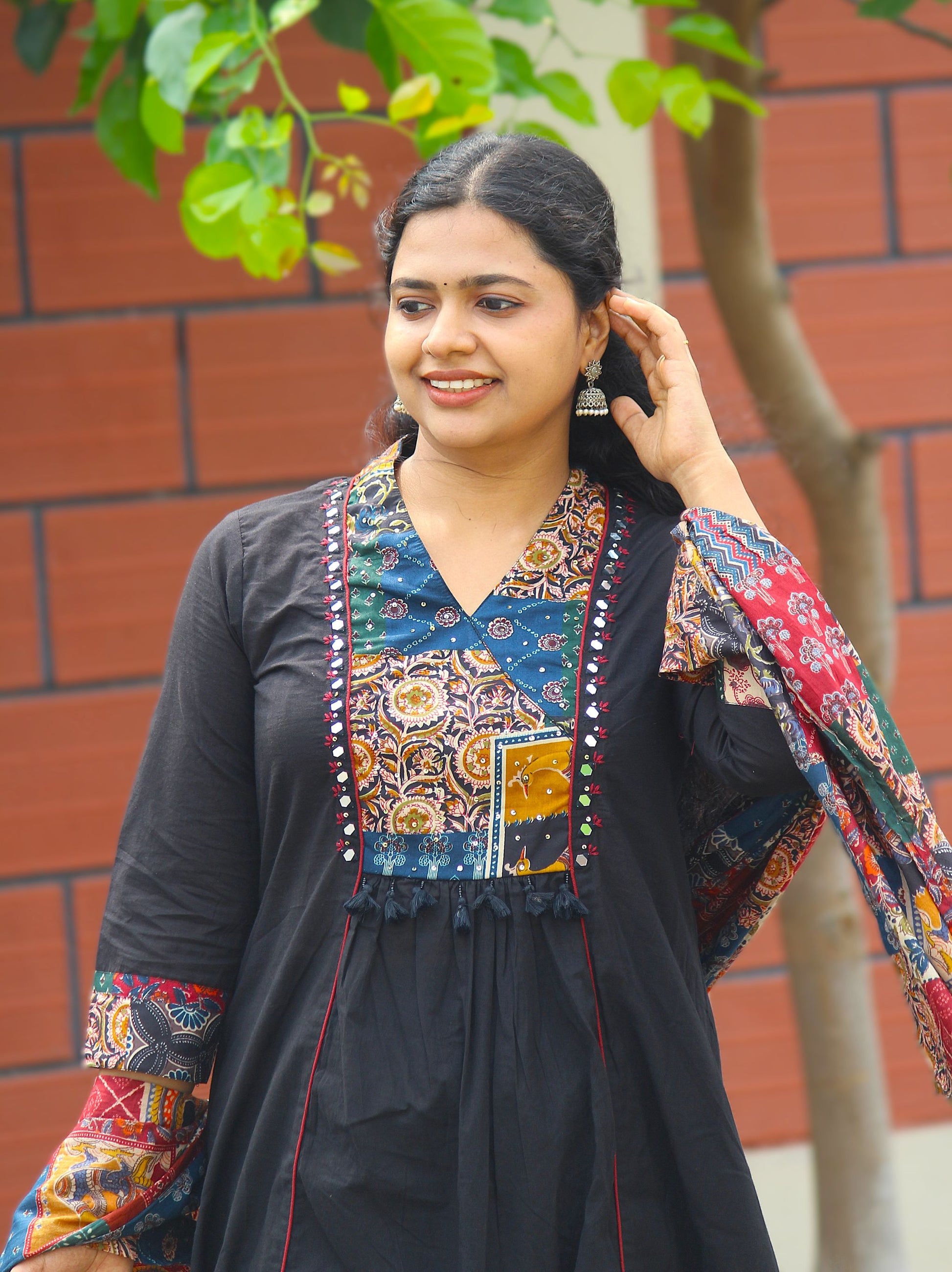 Patch work and mirror work on yoke portion