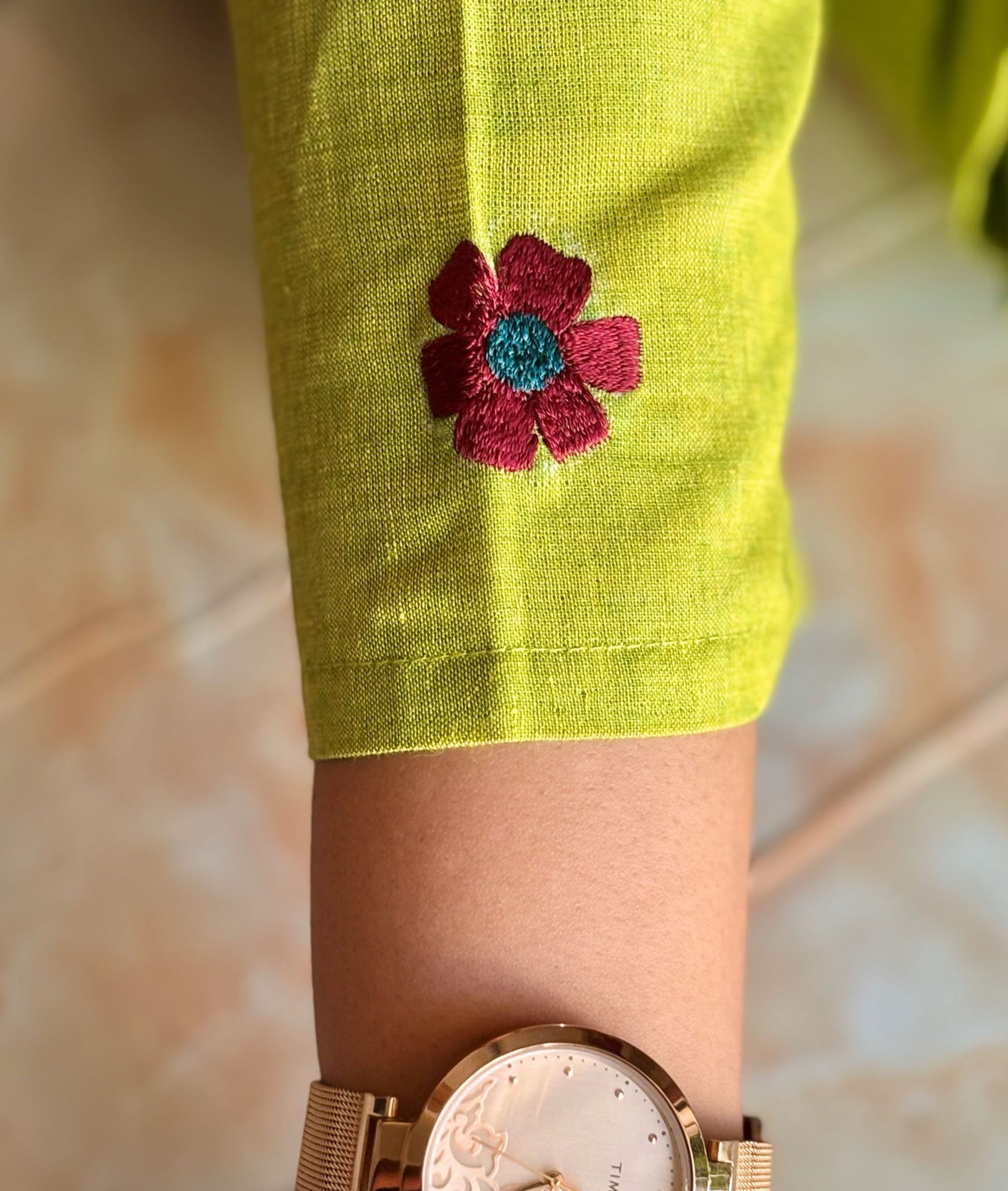 For Hand-block printed fabric, wash separately in cold water for first few times as colour may bleed.