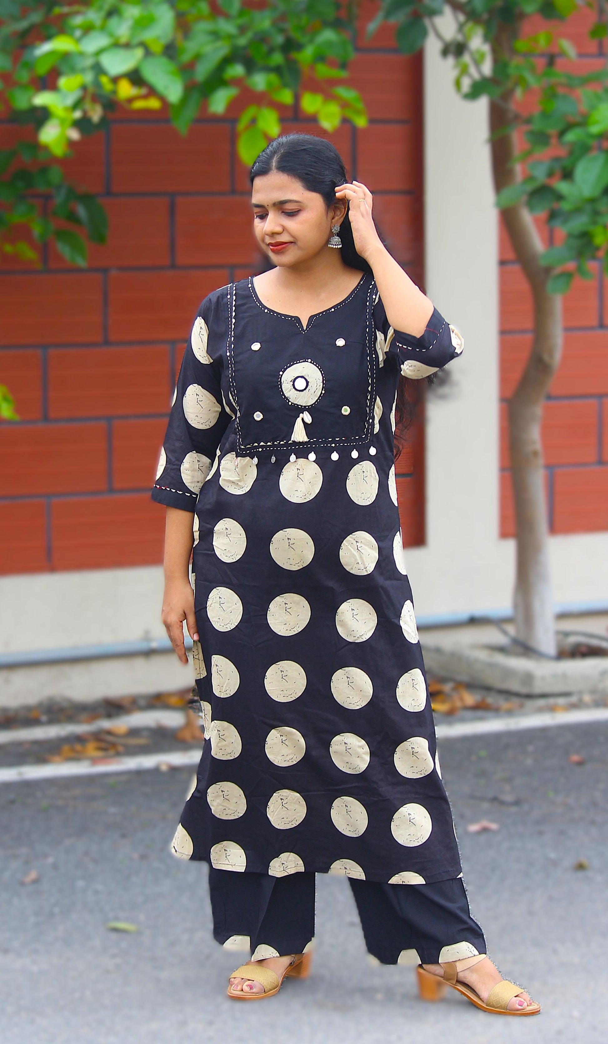 For Hand-block printed fabric, wash separately in cold water for first few times as colour may bleed.