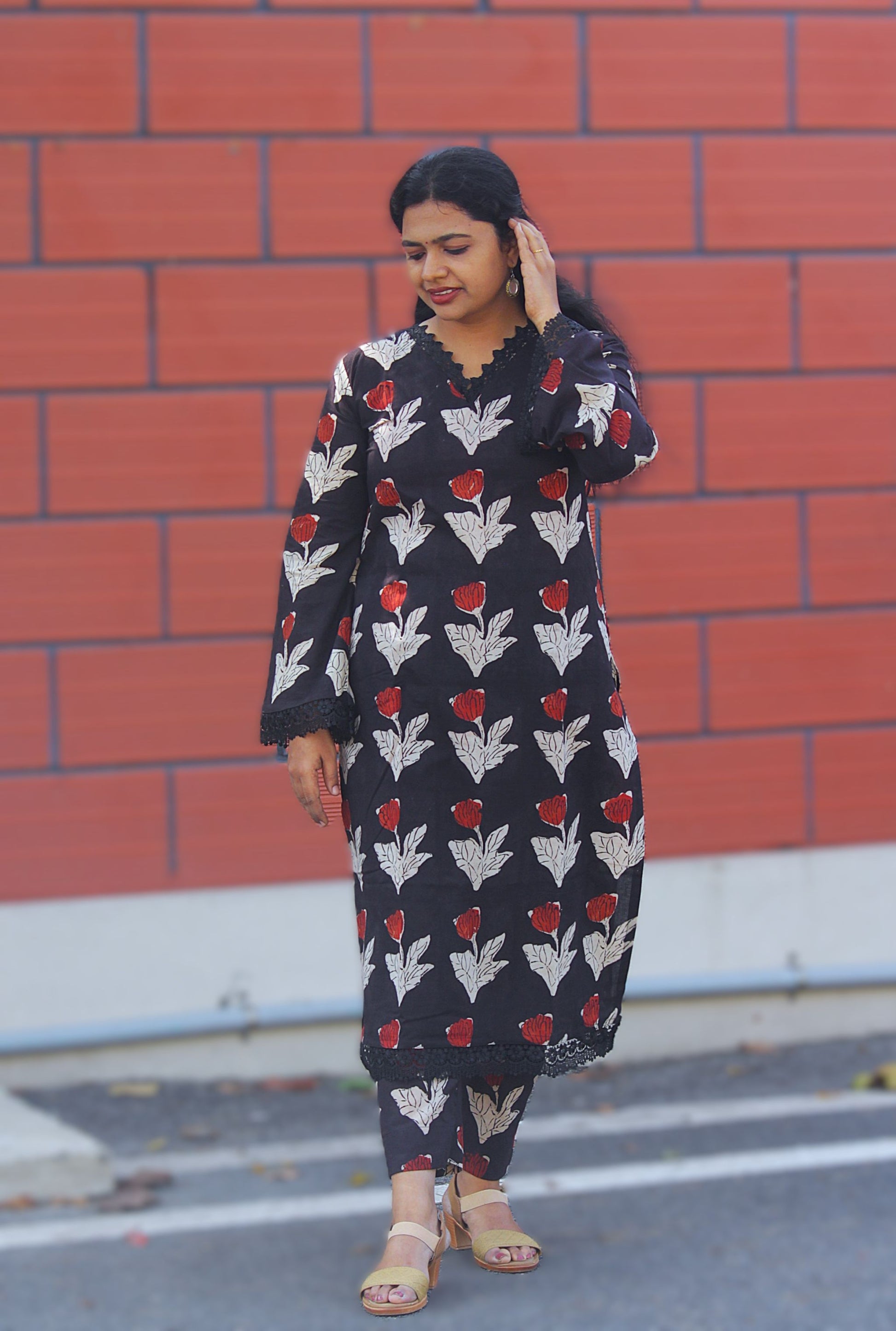For Hand-block printed fabric, wash separately in cold water for first few times as colour may bleed.