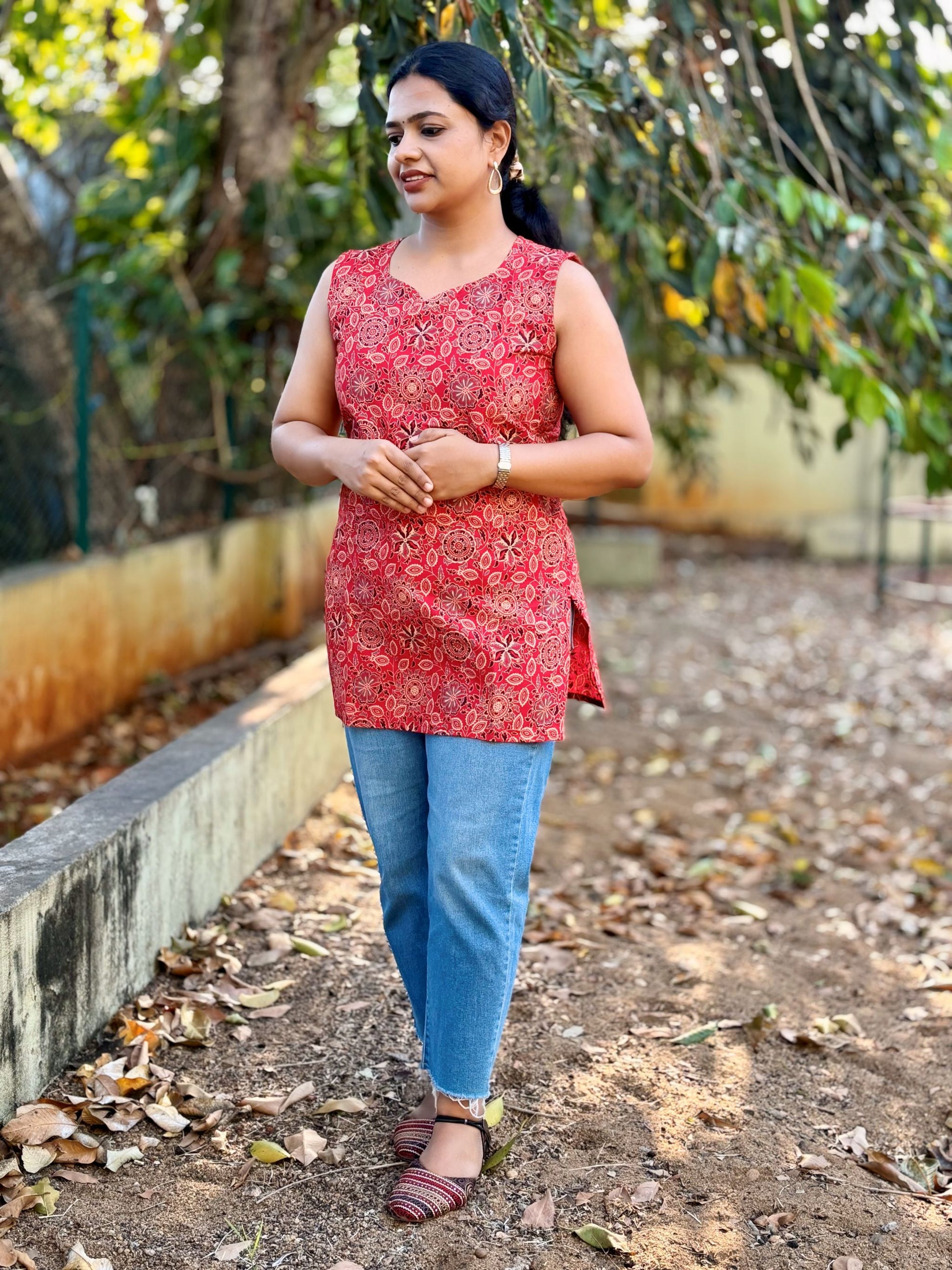 For Hand-block printed fabric, wash separately in cold water for first few times as colour may bleed.