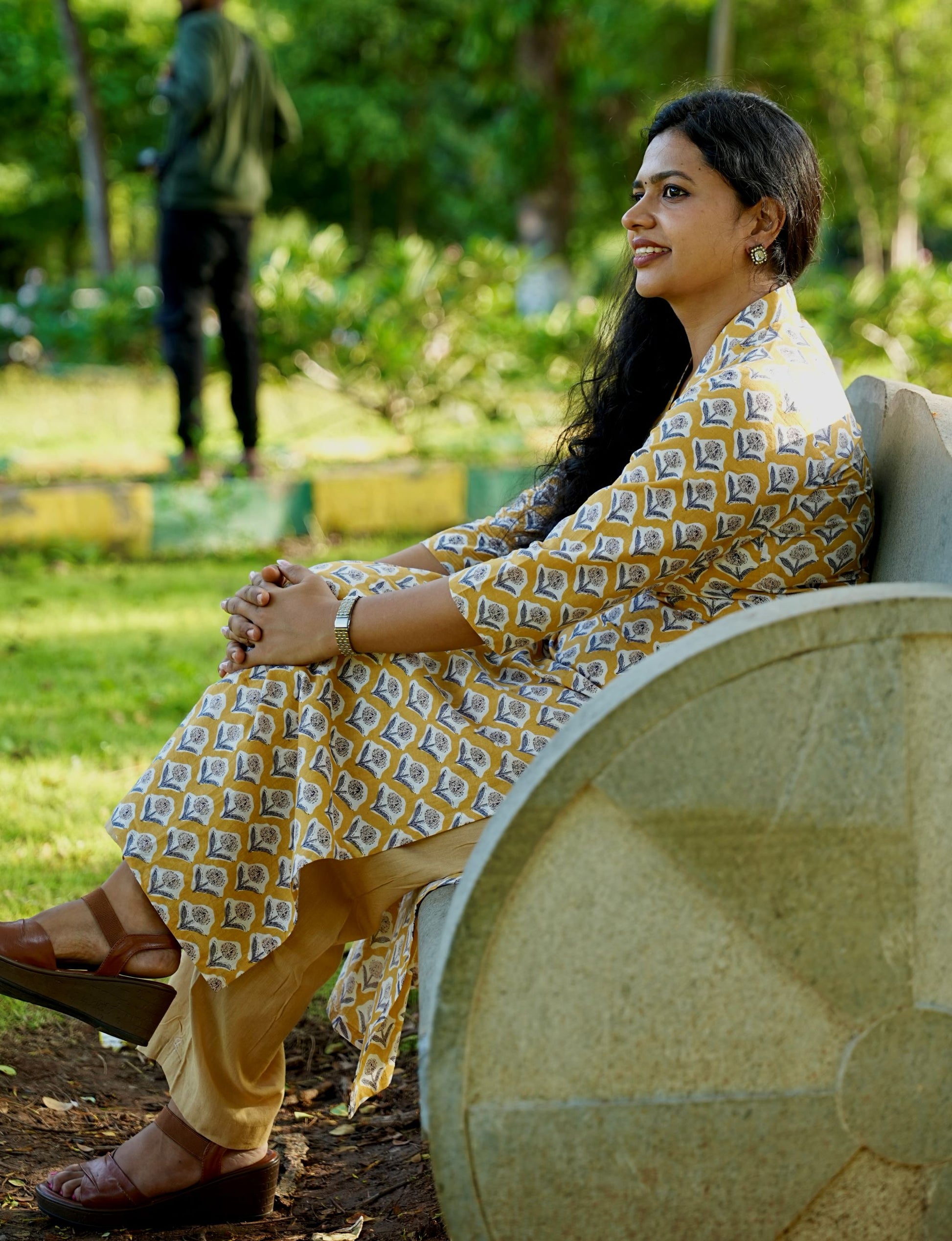 For Hand-block printed fabric, wash separately in cold water for first few times as colour may bleed.